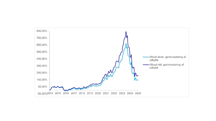 Forudsætning: Afkastet vises for perioden december 2014 til december 2025. Skat og handelsomkostninger er ikke inkluderet, da disse kan variere mellem investorer. Afkastet er opgjort i DKK.